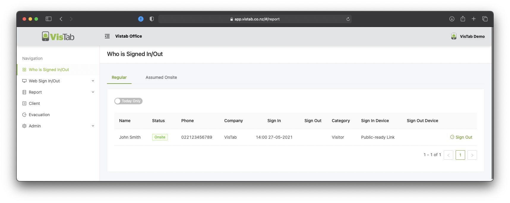 After logging in you will be presented with an overview of who is signed in/out at your location.