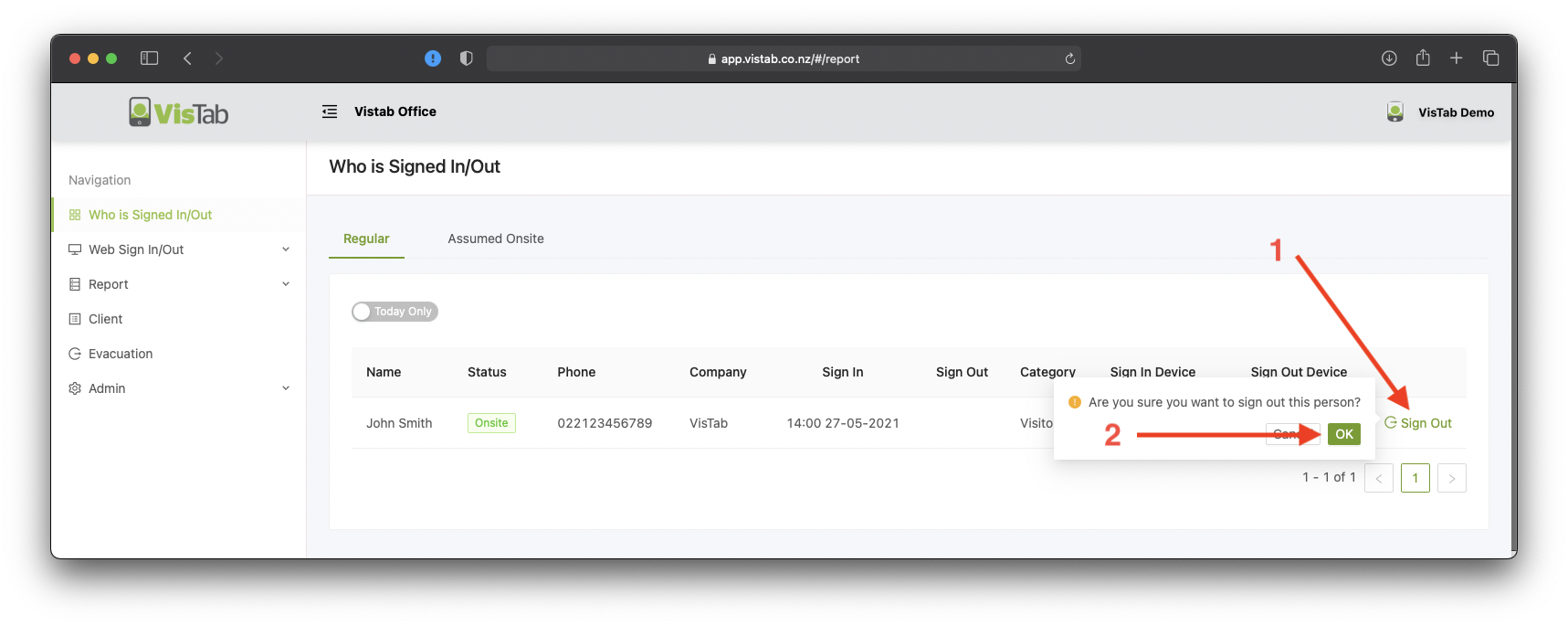 If someone forgets to sign out on the tablet, this is where you are able to manually sign them out.