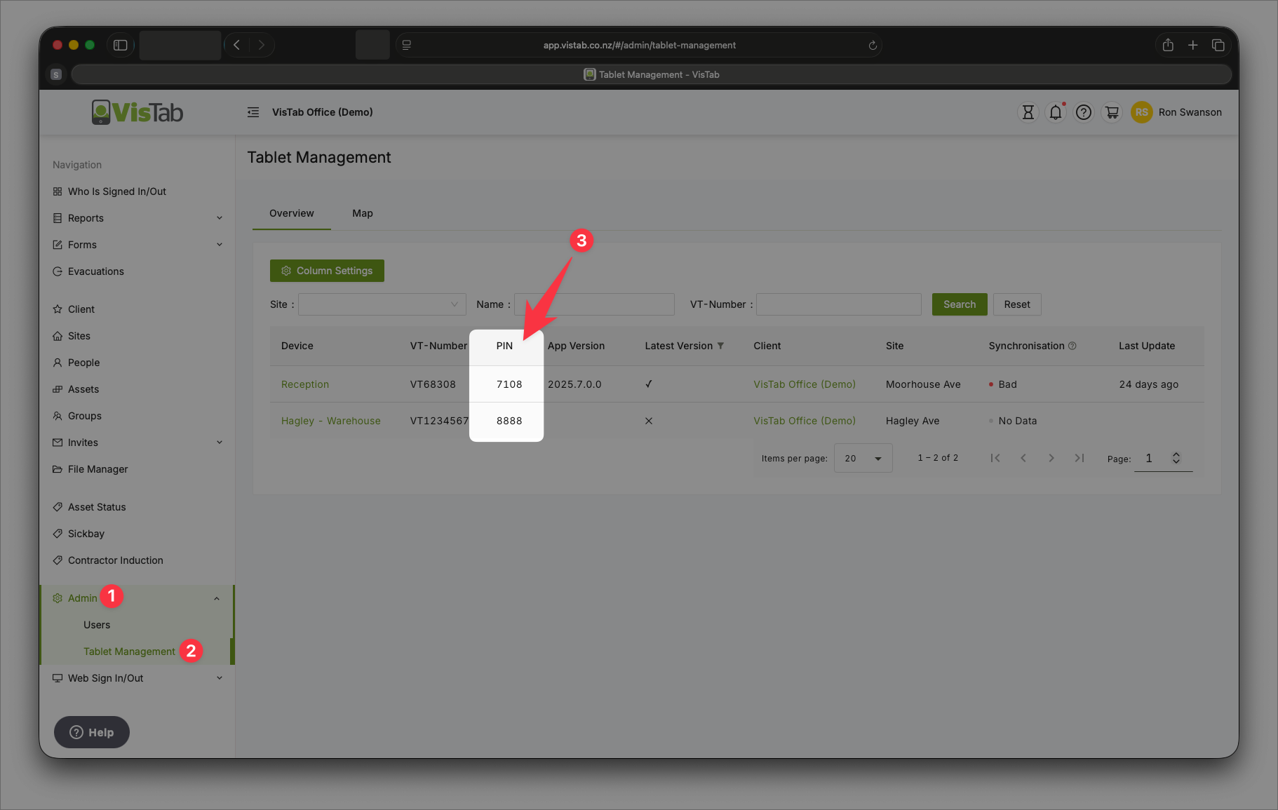 Your tablet collects visitor information which are then sent to the Web Portal, you can view these in the Reports. Find additional information here.